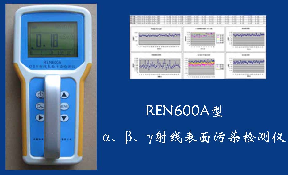 REN600A型α、β、γ射線表面污染檢測儀即可檢測α、β、γ射線,也能檢測到X射線,它采用高速嵌入式微處器作為數(shù)據(jù)處理單元,點陣式大屏幕LCD液晶顯示,讀數(shù)清晰、操作方便,具有400條超大容量數(shù)據(jù)存儲。儀器采用進(jìn)口的大面積MICA蓋革探測器,具有較高探測效率,可進(jìn)行α、β輻射表面污染檢測和X、γ輻射劑量率的監(jiān)測。此外通過配套的RenriCont表面污染管理軟件可將存儲的數(shù)據(jù)讀出后分析?蓮V泛用在制藥廠、實驗室、發(fā)電廠、進(jìn)出口商檢、采石場、環(huán)境實驗室、環(huán)境污染調(diào)查、核安全應(yīng)急、緊急狀況營救站、金屬處理廠、地下油田、供油管道裝備、醫(yī)院核醫(yī)學(xué)科、同位素實驗室、環(huán)境保護(hù)和警察局等部門。REN600A型α、β、γ射線表面